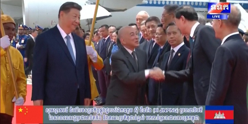 Chinese leader Xi Jinping touched down at the airport in Phnom Penh on Thursday, where he was greeted by King Norodom Sihamoni during a military welcome ceremony. Xi is scheduled to go to the palace before holding meetings with former leader Hun Sen and his son, Prime Minister Hun Manet.