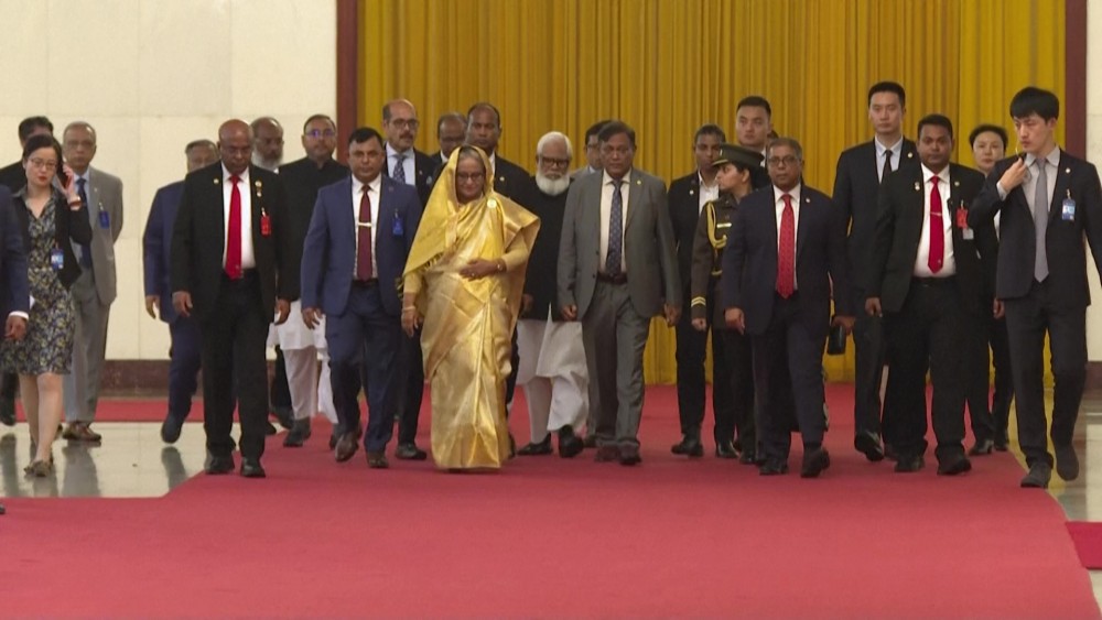 China's President Xi Jinping met Bangladeshi Prime Minister Sheikh Hasina at the Great Hall of the People in Beijing on Wednesday.