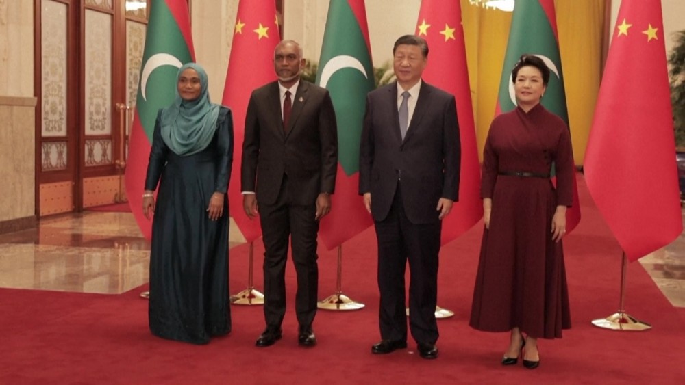 Chinese President Xi Jinping greeted Maldivian counterpart Mohamed Muizzu in Beijing on Wednesday during Muizzu's first state visit since taking office in September. The two heads of state announced the elevation of bilateral ties to a comprehensive strategic cooperative partnership.