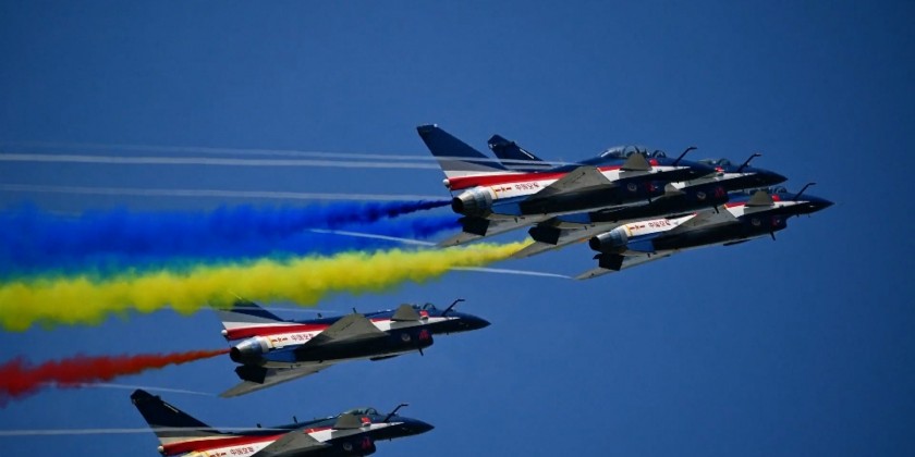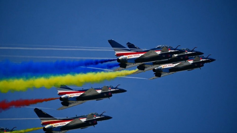 The Chinese People's Liberation Army Air Force's Bayi Aerobatics Team demonstrated aerobatic maneuvers at the opening ceremony of the 16th Langkawi International Maritime and Aerospace Exhibition in Langkawi, Malaysia, on Tuesday.
