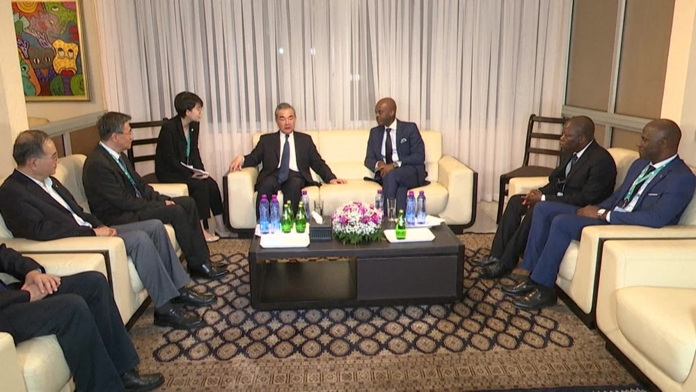 Chinese Foreign Minister Wang Yi was greeted by his Togolese counterpart Robert Dussey on Tuesday on his arrival at Lomé airport, as part of a tour of four African countries.