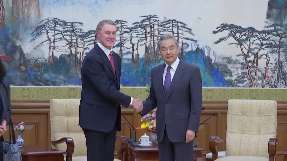 China's Foreign Minister Wang Yi met with David Perdue, the new US Ambassador to Beijing on Tuesday. During the meeting, they called for healthy bilateral ties on trade, drugs and immigration. Wang Yi also said he hopes recently appointed US Ambassador will play a positive role in promoting the healthy, stable and sustainable development of China-US relations, according to a readout published by Beijing's Foreign Ministry.