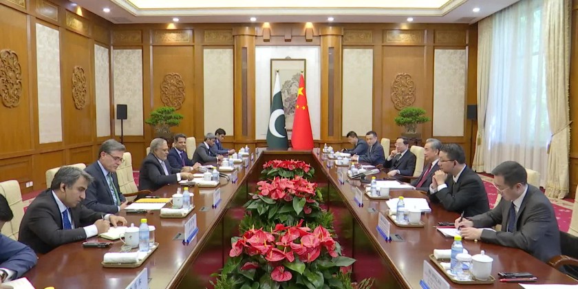 Chinese Foreign Minister Wang Yi held talks with Pakistani Deputy Prime Minister and Foreign Minister Mohammad Ishaq Dar in Beijing on Wednesday, with the two sides exchanging views on China-Pakistan relations and bilateral cooperation in all fields and international issues of common concern.
