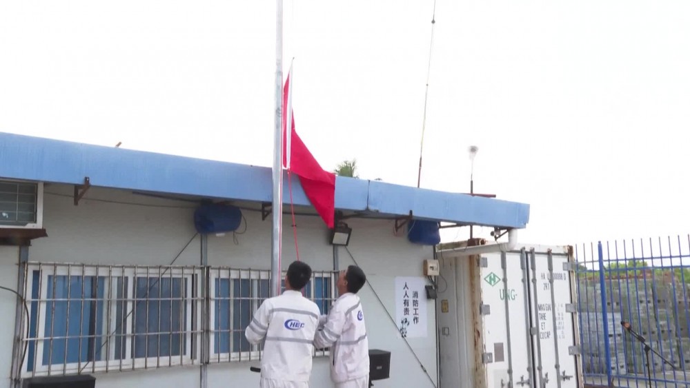 A Chinese national flag-raising ceremony was held on Monday in Nauru by a Chinese diplomatic team for reestablishing the Chinese Embassy.