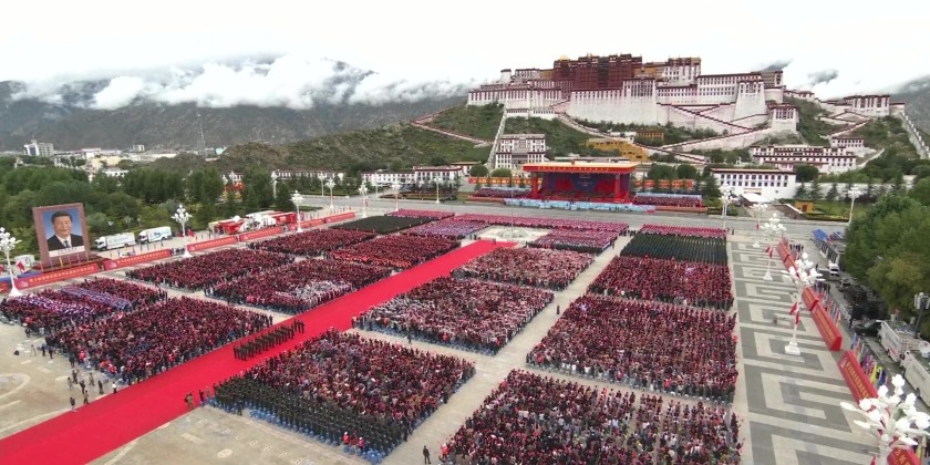 Chinese President Xi Jinping on Thursday attended a grand gathering at the Potala Palace square in Lhasa, capital of Xizang Autonomous Region, to celebrate the region’s 60th founding anniversary.