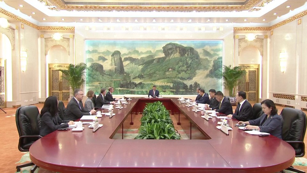 President Xi Jinping on Thursday met with the U.S. National Security Advisor Jake Sullivan at the Great Hall of the People in Beijing.