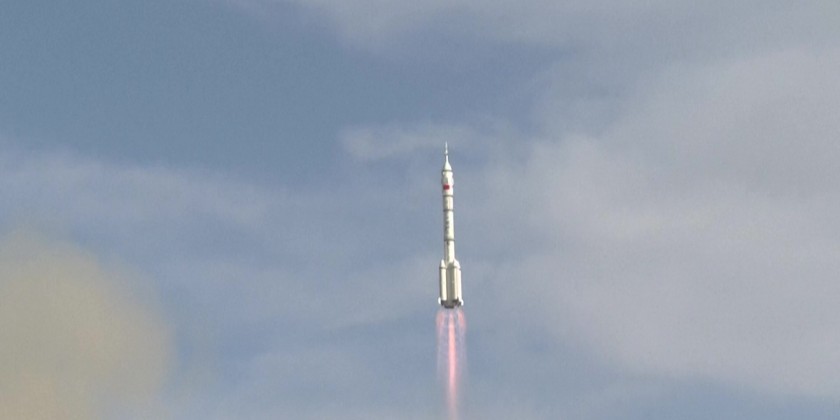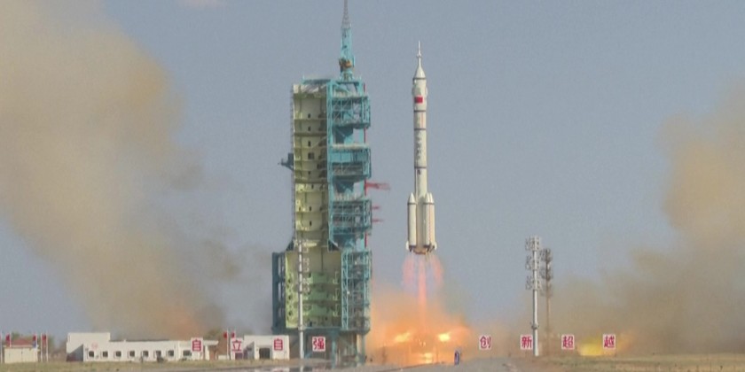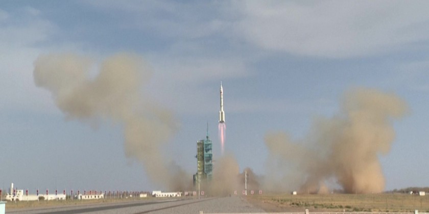 A Chinese rocket carrying three astronauts to the country's space station blasts off from the Jiuquan Satellite Launch Site, in northwestern China, the latest milestone in Beijing's race to become a leading space power.