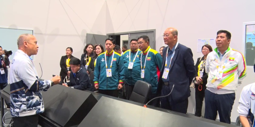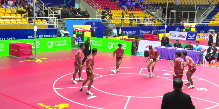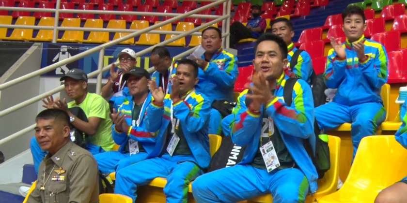 In the morning, at the Nakhonpathom Sport Center in Bangkok, Thailand, the Myanmar Women's and Men's traditional chinlone teams respectively participated in the traditional chinlone group stage Linking (Event 3) competition and the Men's Team group stage Linking (Event 3) competitions held there.