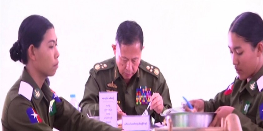 They met cadets individually and chose the appropriate military arms of the Tatmadaw (Army, Navy and Air) depending on obeying discipline, the outstanding in literature, hobbies and their endeavours. The Vice Senior General and party then had lunch together with cadets and Special Platoon Commander (female) trainees at the cadet mess hall.
