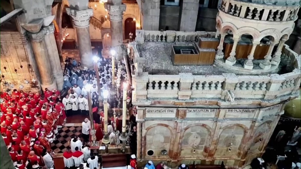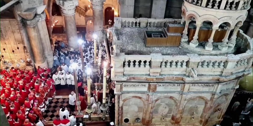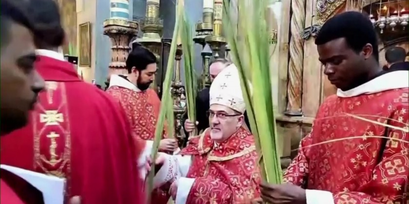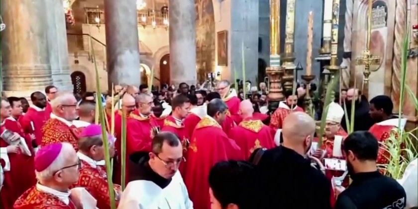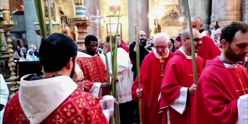 Roman Catholic clergy gathered for a Mass at the Church of the Holy Sepulcher in Jerusalem to mark Palm Sunday. Palm Sunday is the sixth and last Sunday of Lent. It occurs on the Sunday before Easter.
