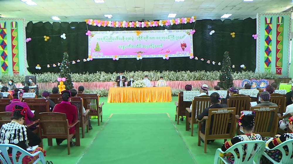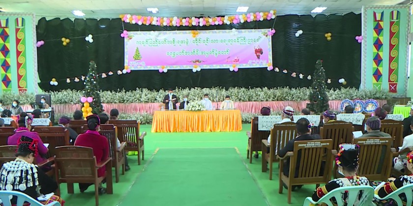 First, the chief minister, state chief justice, state ministers, state level departmental officials and the members of national races literature and cultural committees attended the the Christmas celebration and praying ceremony held at Ma Gywe Hall in Manaw ground of Sitapu Ward, Myitkyina Township.
