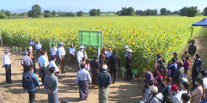 Afterward, the chief minister and members inspected the seed producing sunflower plantation in Zee Lun pedigree farm owned by the cultural department of Myitkyina. Then, the chief minister met with the farmers in Myitkyina and Wai Maw Townships and coordinated necessaries to promote the production of oil crop sunflower and provide the agricultural technical assistances.