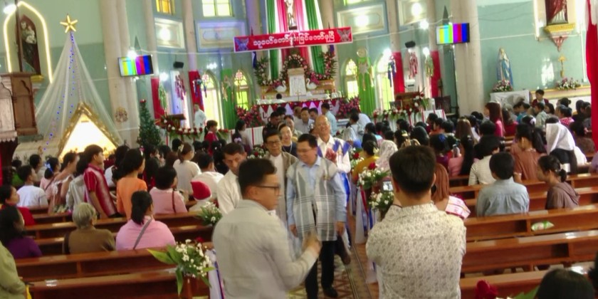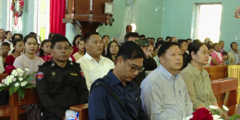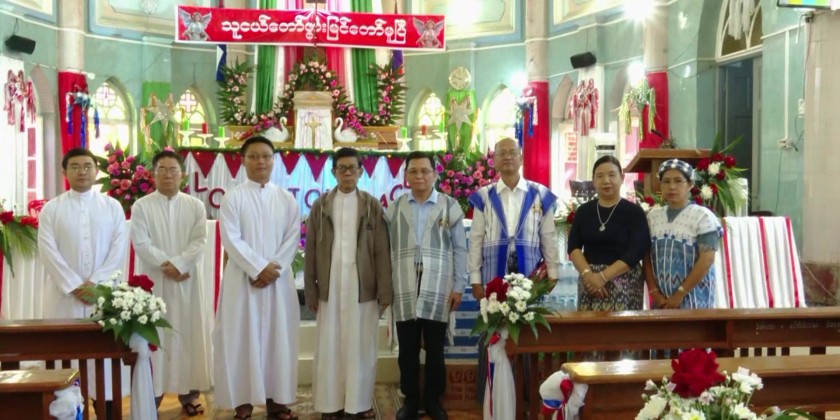 Union Minister for Immigration and Population U Myint Kyaing, along with the concerned officials and townselders, on Thursday visited Kanaso Kone Village in Wakema Township on Thursday to attend the Christmas Celebration at the Assumption's Church.
