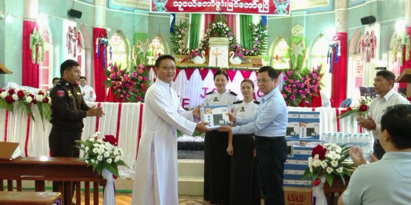 And, the Union Minister extended his blessing for all Christianson Christmas Eve receiving Christ’s kindness and peace in the future from now on. After Christmas greetings made by one of the Fathers at the Church, the Union Minister provided solar lamps and foodstuff for the Church and received commemorative gifts.