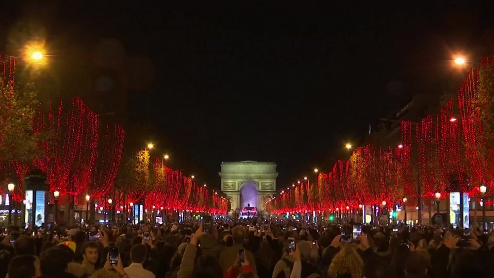 Paris Mayor flipped the switch and lit up the Champs-Elysées on Sunday evening, kickstarting the Holiday season along one of the world's most famous avenues. Hundreds of Parisians, tourists and shoppers swarmed the main road which was cut off to traffic to enjoy the festive atmosphere. The Christmas lights will shine every evening until January 8. They'll stay lit the entire nights of December 24 and 31.