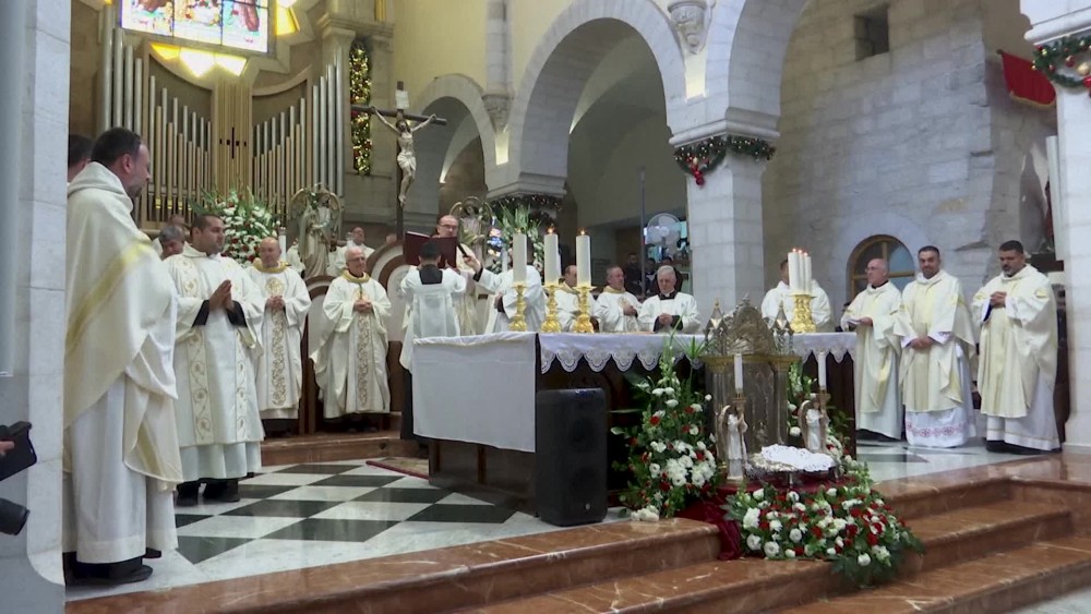 The top Catholic clergyman in the Holy Land held a Christmas morning Mass at Bethlehem’s Church of Nativity on Sunday, following a day of celebrations in the city’s Manger Square.