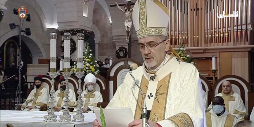 The Latin Patriarch of Jerusalem led the Mass. Thousands of foreign pilgrims usually flock to Bethlehem for Christmas celebrations. But the closure of Israel's international airport to foreign visitors kept them away.