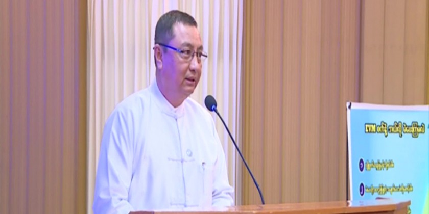 The clarification and demonstration regarding with the Myanmar Electronic Voting Machine (MEVM) was carried out by the members of UEC U Aung Lwin Oo, U Ko Ko Lwin and officials concerned from the UEC and the trial voting was conducted.