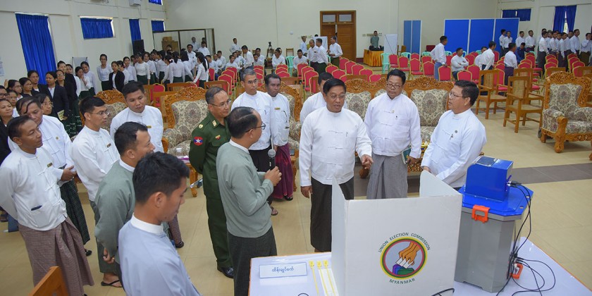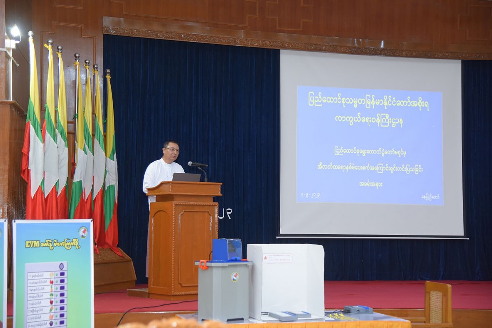 The Union Election Commission conducted clarification and demonstration of test voting in regard with Myanmar Electronic Voting Machine (MEVM) at the Minsitry of Defence on Thursday.