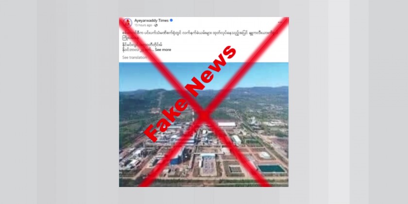 Fake news circulating on social media alleges that the No.2 Pangpet Steel Mill, operating under the Ministry of Industry in Namt Hsi Village-tract, Taunggyi Township of Shan State, is engaged in projects related to weapon manufacturing and uranium production.