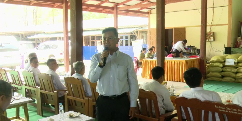 Members of the Kachin State Local Committee for Project Support and Cooperation, in connection with the Ayeyarwady Myitsone–Myitnya Hydropower Project, held a clarification and discussion meeting with temporarily displaced families and local residents from Naung Chain Village Tract, Waingmaw Township, on April 28 at the hall of the Kachin Baptist Church in Naung Chain Village.
