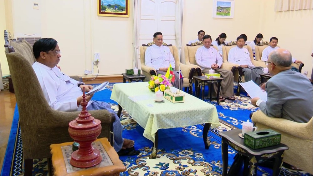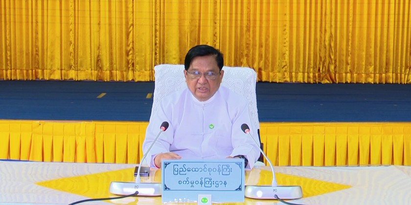 Dr. Charlie Than, Union Minister for Industry and Vice-Chairman of the Central Committee for Industrial Development and Industrial Zone Progress, participated virtually from the meeting hall of the Ministry, Office No. (30).