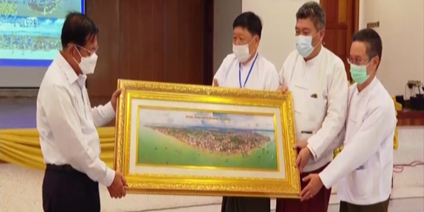 Then, the Chairman of State Administration Council Prime Minister was presented a photo of Myeik Township by the chairman of Myeik Public Corporation Limited U Hla Than and officials. Afterward, the SAC chairman cordially greeted the attendees.