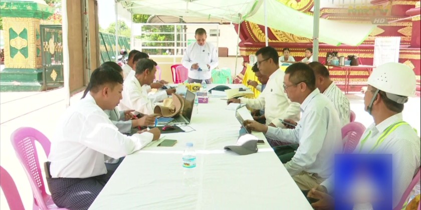 Following this, U Tun Tun, Chair of the Uppatasanti Pagoda Renovation Committee and Member (1) of the Nay Pyi Taw Development Committee, presented updates on the use of machinery on the pagoda platform, the need for more equipment, and coordination efforts with the Military Engineering Department and Asia World Company to secure the necessary machinery for ongoing construction.