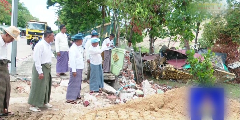 He reported on the number of slabs already salvaged, ongoing construction of the temporary prayer hall, and other reconstruction activities. Chair of the Technical Advisory Subcommittee for the Uppatasanti Pagoda Renovation and Member (1) of the Nay Pyi Taw Council U Khin Maung Lat, presented progress on the construction of a 640-foot-long ascend stairway on the northeastern side of the platform.