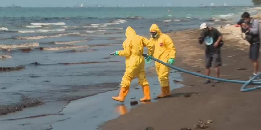 ]The leak was stopped within hours, the company said, but efforts to keep an oil slick from reaching the Mae Ramphueng beach in Rayong province were unsuccessful, and some oil began spilling onto the sand there on Saturday morning.