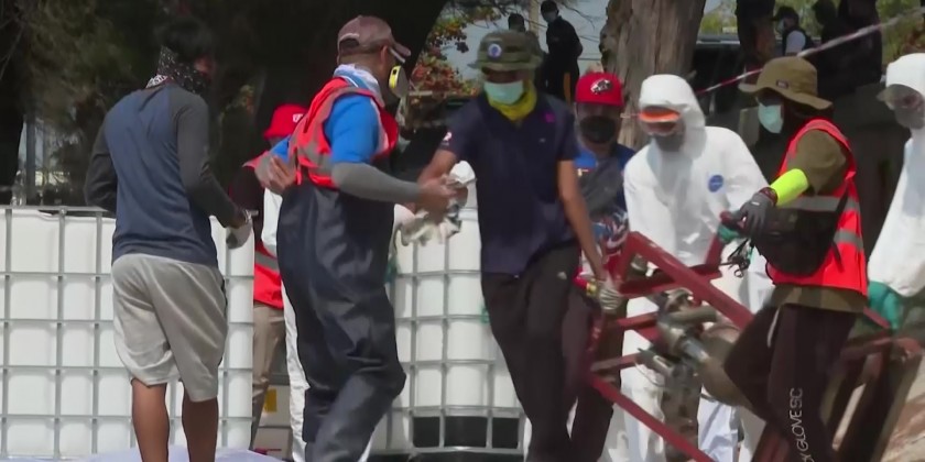A major part of the slick remains at sea and there are concerns it may hit Koh Samet, an island popular with foreign and domestic tourists.