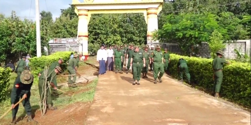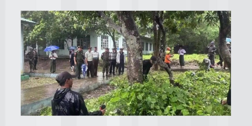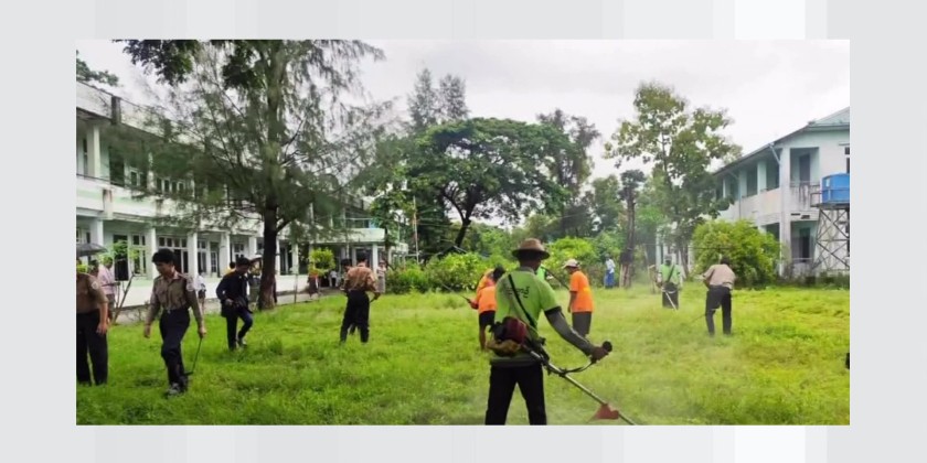 Currently, in 12 townships including Mingalardon Township in Yangon Region, local military personnel, departmental staff, social organizations, and local residents are collectively engaged in activities such as clearing thick bushes inside and outside basic education schools, removing garbage, digging drainage ditches to improve water flow, applying pesticides in ponds, spraying insecticides in mosquito breeding areas, and distributing health education leaflets.