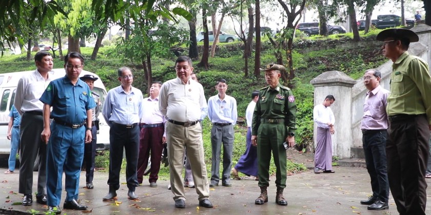 Mon State Chief Minister U Aung Kyaw Thein, together with state ministers and officials, visited Taung Yoe Tan Road in Mawlamyine on Saturday to observe public clean-up activities.