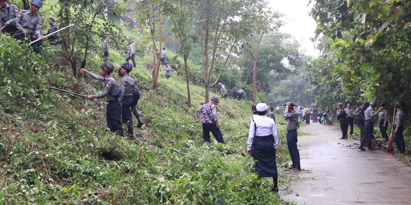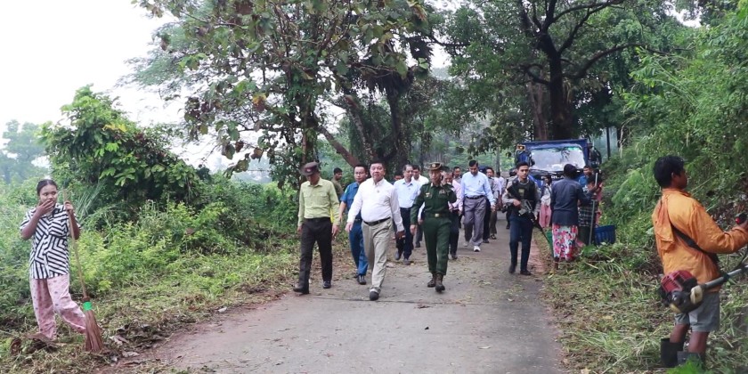 He also met with responsible officials to coordinate further cleaning and greening efforts along the road. Similar community clean-up activities are being carried out across towns and villages in Mon State, including weekly school cleaning programs to keep basic education schools neat and beautiful.