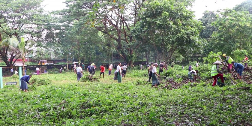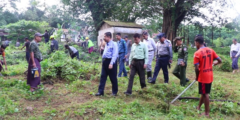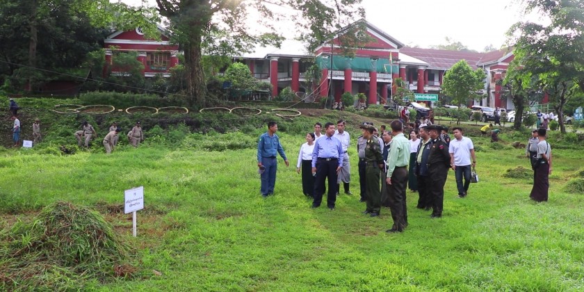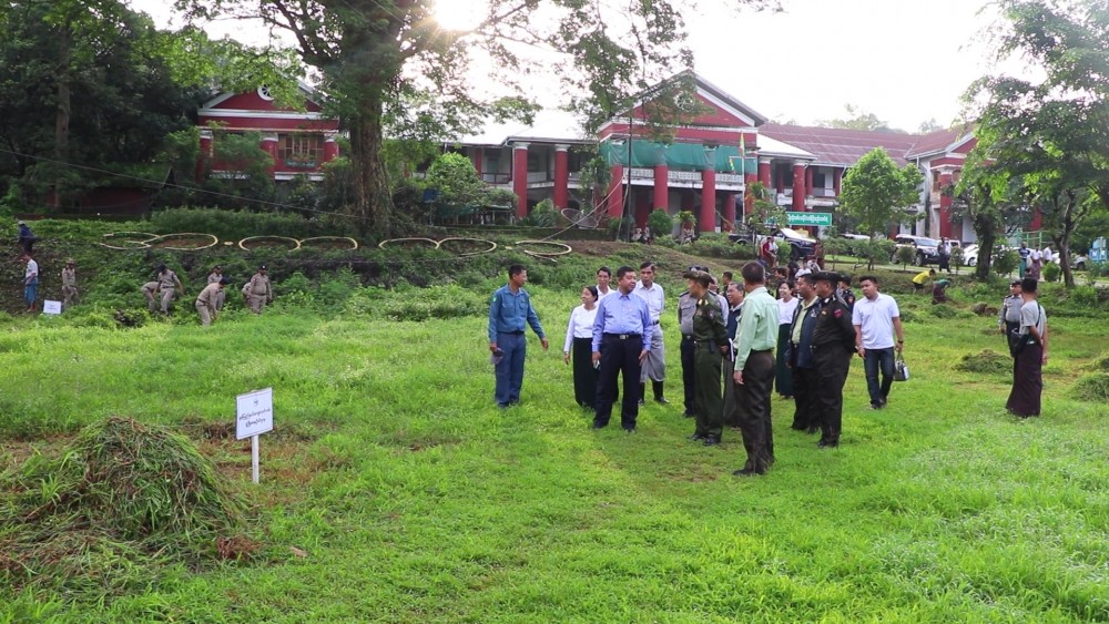 For the cleaning and greening of the basic education schools in Mon State, the Mon State Chief Minister U Aung Kyi Thein and officials oversaw the cleaning tasks carried out by departmental staff, members of Myanmar Police Force, Fire Brigade and social organizations and local residents in the compound of No.3 Basic Education High School on 19th August in Mawlamyaying.