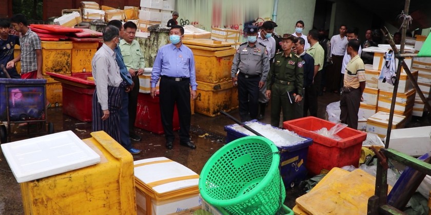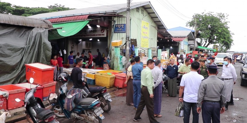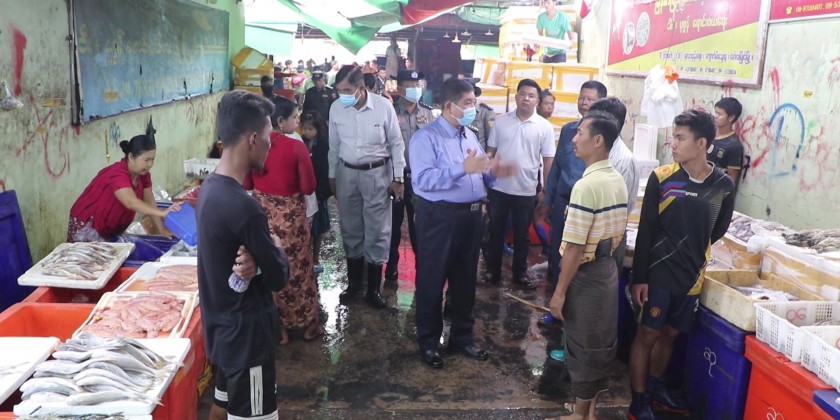 Afterwards, the Chief Minister and party inspected the Yadanar Tun Market on Strand Road in Mawlamyaing. During the inspection, the Chief Minister met with the concerned officials and urged them to focus on cleanliness of the market, systematic marketing, traffic congestion prevention and better garbage system. Then, the Chief Minister viewed the selling and buying of fish, prawn and marine products.