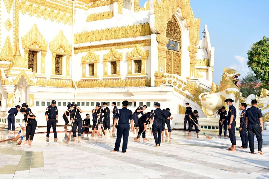On Saturday, the Department in Yangon carried out cleaning process at Swe Taw Myat Pagoda in Yangon.