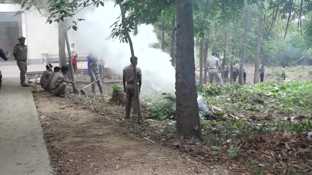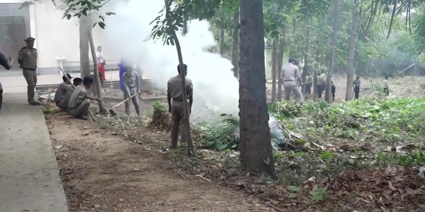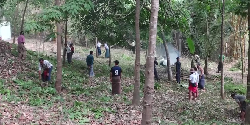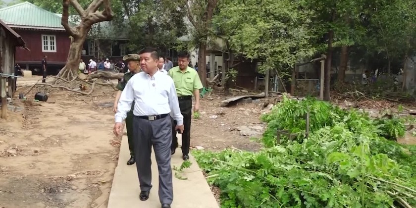 Mon State Chief Minister U Aung Kyi Thein together with the State Ministers viewed and encouraged the departmental personnel, members of Myanmar Police Force and members of Fire brigade, civil societies organizations and ward residents who carried out for the cleaning and greening of the schools collectively at the compound of Ngante sub high school in Mawlamyaing Township in the morning on 27th April.