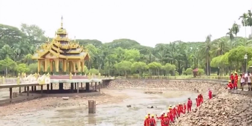 Member, Shwedagon Pagoda Board of Trustee, HlaMyint, said " This lake is called Shin Upagutta Mingalarkandawgyi of the Singuttara Hill. With the 100 volunteers, lake excavation and removing slit were carried out. We can raise our luck by lake excavation, one of the beliefs of Myanmar people. I really thank to the volunteers and members of Myanmar Fire Services Department for conducting suck kinds of services."