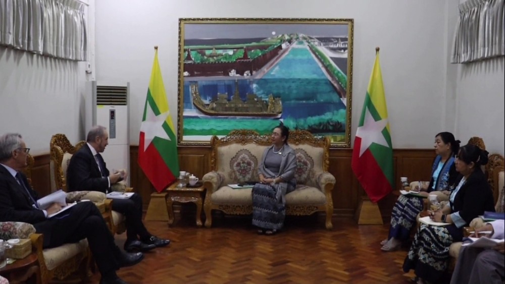 Union Minister for Investment and Foreign Economic Relations, Dr. Wah Wah Maung, received a delegation led by Mr. David William Mclachlan-Karr, Regional Director for Asia and Pacific of the UN Development Coordination Office (UNDCO), at the Ministry on Thursday.