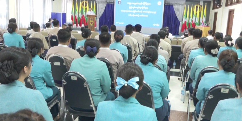 The Closing Ceremony of the Basic Clerical Staff Training Course No. (1/2025) of the Internal Revenue Department was held at the Large Taxpayer Office (1) in Yangon on December 18 and attended by Union Minister for Finance and Revenue Dr. Kan Zaw, Deputy Ministers, Directors General and Managing Directors, Directors, Training Instructors, (80) trainees and the Union Minister delivered a speech.