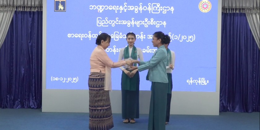 Next, Deputy Minister DawThan Than Lin presented awards to the winners of the training, and Deputy Minister U Han Win Aung presented completion certificates to the training leader. The Union Minister then inspected the State Lottery Directorate, Medium Taxpayer Office (3) and encouraged the staff and made instructions.