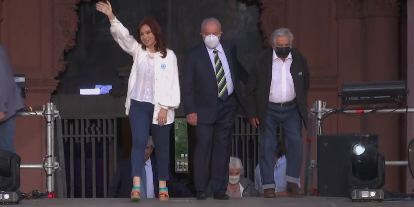 He was joined by his Vice President Cristina Fernandez as well as former Brazilian President Luiz Inacio "Lula" Da Silva and former Uruguayan President Jose Mujica who attended as special guests during Friday's celebration.