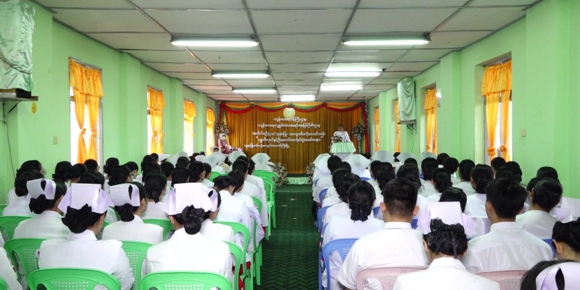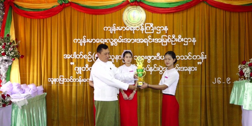 The Department of Human Resources for Health organized a Duty Coats and Nursing Caps presentation ceremony for the trainees who had completed No (48) batch 3-year Nursing-Midwifery Diploma Course at the Nursing and Midwifery Training Schools in Sao San Htun Hospital compound, Taunggyi Township, Shan State in the morning on 26th September.