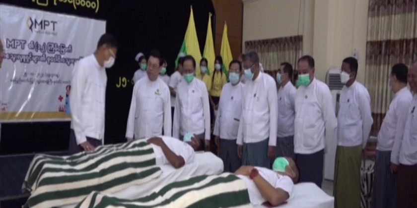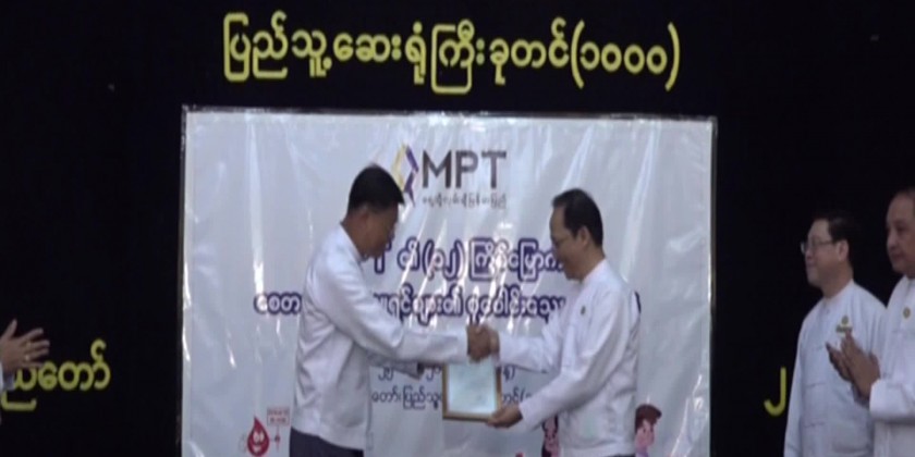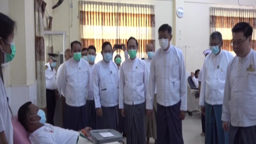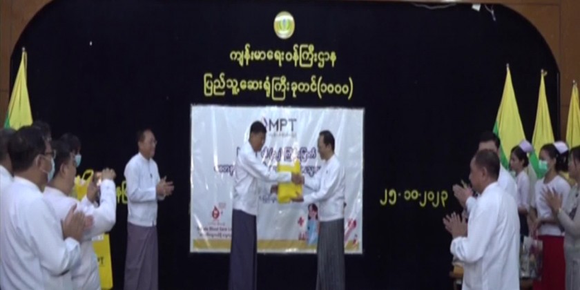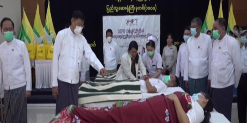 The personnel and family members of Myanmar Post and Telecommunications under the Ministry of Transport and Communications and blood donors conducted collective blood donation in Nay Pyi Taw, Yangon, Mandalay and other cities of regions and states and the Deputy Prime Minister Union Minister General Mya Tun Oo encouraged and comforted the blood donors at Nay Pyi Taw 1000-bed General Hospital on 25th October.