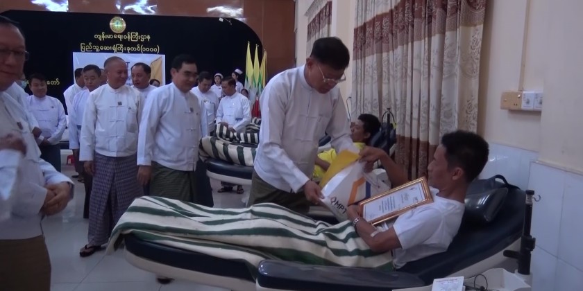 They also provided foods and medicines for donors. Subsequently, Deputy Minister of Health, Professor Dr. Aye Tun, presented a certificate of appreciation for the blood donation, and the Deputy Minister and Union Minister handed back commemorative gifts.