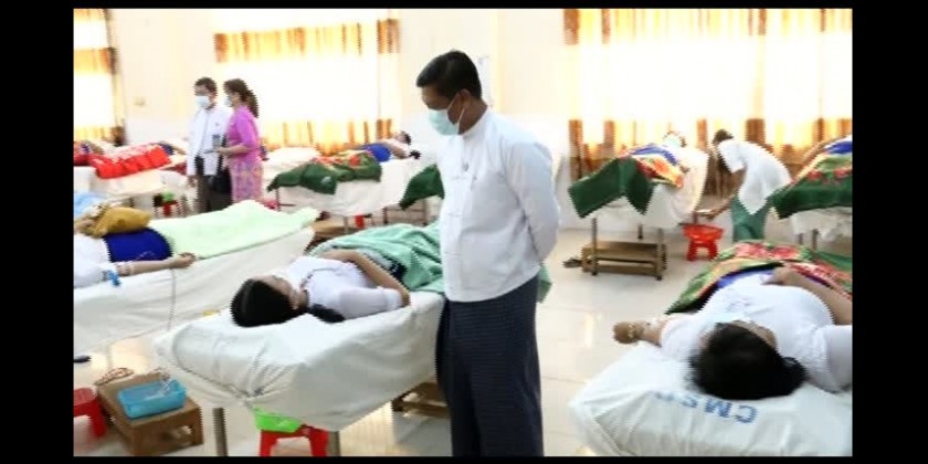In honoring and hailing the International Workers’ Day which falls on 1st of May, the collective blood donation of the personnel of the Ministry of Labour was conducted at 1000-bed Nay Pyi Taw General Hospital in the morning on 26th April and the Union Minister for Labour Dr. Pwint Hsan, Deputy Minister U Win Shein and the directors general of the Ministry attended and encouraged the blood donors.