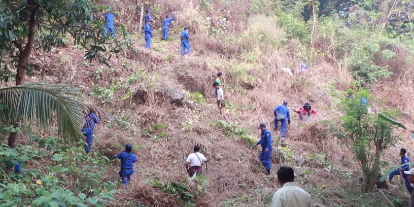 The Chief Minister observed and encouraged a large-scale collective cleaning effort involving Government departmental staff, members of Myanmar Police Force, members of Fire Brigade, social organizations and civil society groups, local residents of the ward and volunteers worked together to clear bushes and grass and perform general cleaning both inside and outside the Dhamma Beikman.