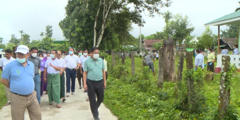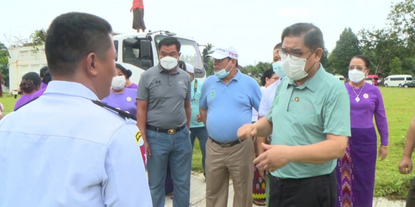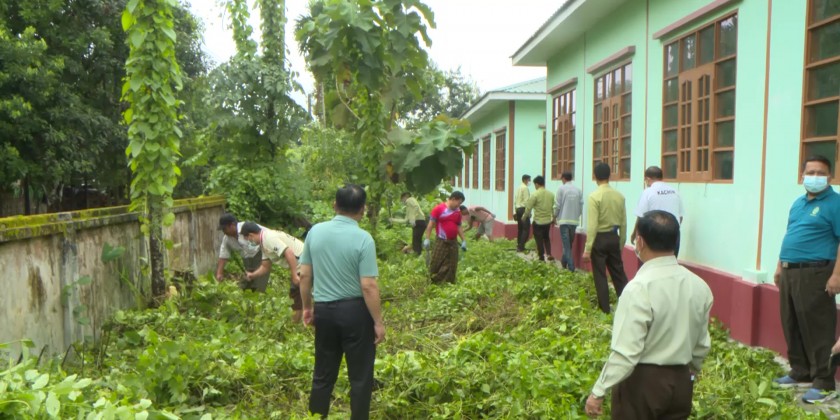 The state chief minister U Khet Htein Nan and wife Daw Nan Saing, state ministers and their wives, state advocate general and members of state women’s affairs organizations supported and provided breakfast foods and purified drinking water bottles for the departmental organizations, families of battalions and units from the military stations under the command of north command and members of civil society organizations cut the bushes, collected garbage and filled the waterlogged places, inside and outside of basic education high school (Man Khein) compound.