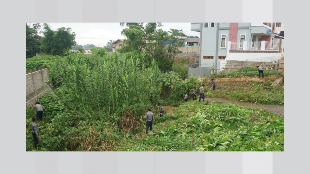 Tatmadawmen, Township General Administration Department and members of the Township Fire Services Department and Myanmar police force, Township Development Committee and state/township level departmental officials implemented the collective cleaning task of bushes and garbage in the KhoKala creek in Hopong Township of Pa-O Self Administrated Zone to implement greening environ and better drainage system of the creek.